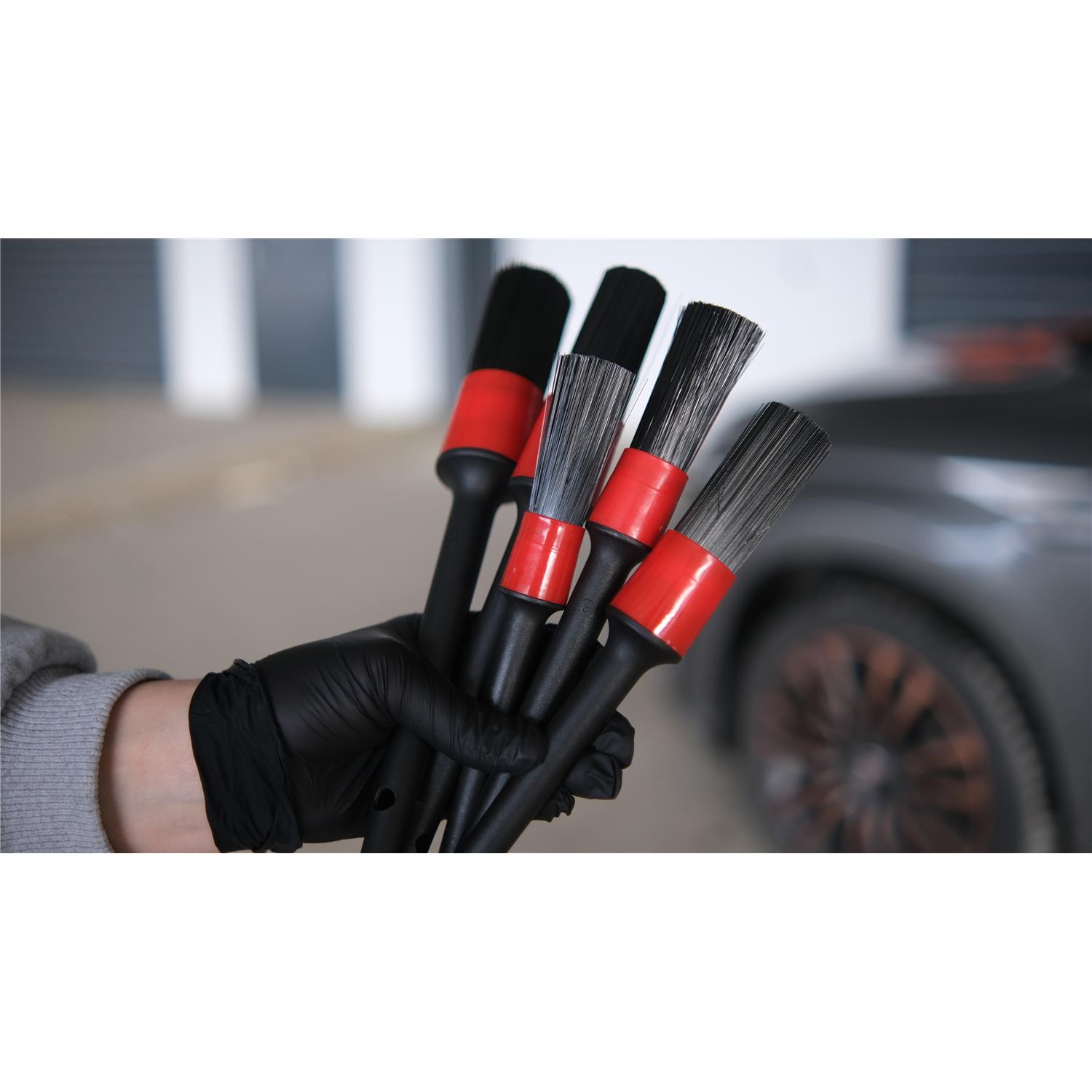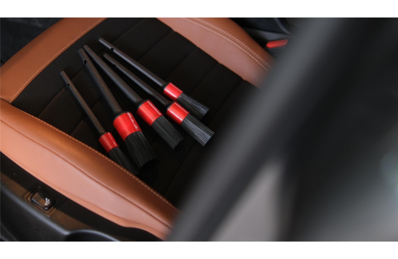 Dark Detay Fırçası Seti, 5 adet siyah kıllı ve siyah plastik saplı detay fırçasından oluşur. Zarif tasarımıyla dikkat çeken bu set, araç temizliğine modern bir dokunuş katar.